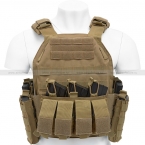 Бронежилет с комплектом подсумков, модель VT8944, производство Китай. Внутренние отделения жилета спроектированы под плиты формата SAPI Medium (плиты в комплект поставки не входят). Спереди и сзади есть специализированные отделения для установки мягкой баллистики размером примерно (Ш) 25 х (В) 34 см. В камербанде отделений для установки бронезащиты нет.