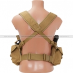Легкая нагрудная разгрузочная система, которая позволяет сохранить максимальную мобильность. Все подсумки пришиты к корпусу, дотянуться до их содержимого можно как правой, так и левой рукой. Фиксирующие лямки настраиваются по длине в широком диапазоне (примерно от 44 до 62 размера). На плечевых лямках есть нашитые стропы для крепления ножа, рации, фонарика и т.п.