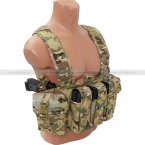 Легкий и компактный разгрузочный жилет с комплектом интегрированных подсумков. В три оружейных подсумка можно разместить до 12 магазинов серии М4 STANAG или их аналогов. Слева и справа расположены вместительные утилитарные подсумки, в которых можно положить пачку шаров, гранаты, ремкомплект или аптечку. По бокам есть 2 кармана на резинке, куда можно поместить пистолет или дополнительные магазины. Наконец, в центре есть карман на липучке под документы.