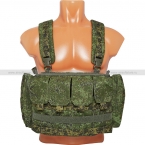У нагрудника есть 4 интегрированных оружейных подсумка, каждый из которых вмешает до двух магазинов серии АК и аналогов. По бокам располагаются универсальные подсумки на молнии под аптечку, гранаты, различное снаряжение. Есть внутренний карман под документы на липучке.