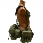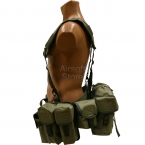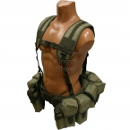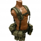 Ременно-плечевая, разгрузочная система для автоматчика в расцветке хаки. Способна размещать до 12-ти магазинов АК, а также множество дополнительного снаряжения. Плечевые ремни (суспендер) крепятся на стальных карабинах к тактическому поясу, на котором размещаются идущие в комплекте подсумки.