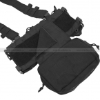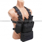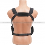 Плечевые и поясная лямки крепятся к жилету на фастексах и регулируются в широком диапазоне. При необходимости их можно отстегнуть от жилета и, используя комплект переходников (приобретается отдельно), закрепить нагрудник на бронежилете.