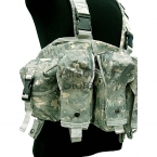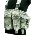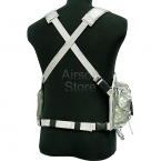 Нагрудный разгрузочный жилет для магазинов АК-типа. На корпусе пришиты 4 подсумка, каждый из которых вмещает до 2х магазинов для АК. Справа и слева от оружейных подсумков расположено по одному универсальному подсумку, которые можно использовать для размещения небольших предметов (пачка с шарами, аккумуляторы, гранаты, фонарик и пр.). Также есть один большой нагрудный карман. Предусмотрена возможность крепления поясного ремня. Регулируется практически под любую фигуру. Прочный и надежный пошив.