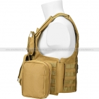 Внешняя поверхность жилета покрыта рядами ячеек PALS/MOLLE, на которых закреплены идущие в комплекте подсумки. Кроме того, жилет можно дополнить своими подсумками.