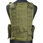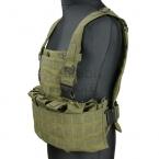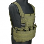Легкий и удобный разгрузочный жилет с комплектом интегрированных подсумков и МОЛЛЕ-стропами на корпусе. На лицевой стороне жилета расположено 6 оружейных подсумков для магазинов от АК или M-серии. Внутренняя поверхность подсумка - ворсистая, к которой крепится на липучке закрывающие клапаны, что позволяет настраивать высоту клапанов ровно под размеры размещаемых магазинов для их надежной фиксации. Впереди (в районе груди) имеется отделение для бумаг, карты или иных небольших предметов.