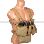 Легкий тактический нагрудник от компании WARTECH. При максимально компактных размерах позволяет размещать всё необходимо снаряжение: до 4х магазинов АК или М-серии, 2 пистолетных магазина, гранату или рацию, необходимое дополнительное снаряжение. В ячейки на плечах можно закрепить нож или небольшой подсумок на MOLLE.