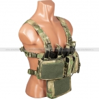 Лёгкий тактический нагрудник, имеет компактные размеры и широкий диапазон регулировки размеров. Позволяет разместить минимально необходимый боезапас и самое необходимое вспомогательное снаряжение, когда критически важна мобильность и малый вес. Вмещает 4 магазина АК или М серии, 2 пистолетных магазина, есть подсумок для документов, гранаты или рации, а также утилитарная набедренная сумка средних размеров, которую можно снять при желании.