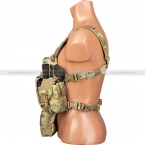 Оперативный нагрудник от компании WARTECH. Можно носить как компактный нагрудник, когда требуется максимальная мобильность и малый вес, либо есть возможность интеграции с бронежилетом (становится модульной платформой). Нагрудник вмещает до 4х магазинов от автоматов АК или М-серии, 2 пистолетных магазина. Также есть отделения для размещения рации/гранаты, аптечки, ЗИП, карты и документов. Напашный подсумок, в отличие от других, – съёмный, крепится на велкро-липучке.