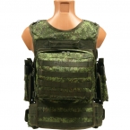 Тактический, разгрузочный жилет Танк в расцветке "Цифра РФ". Представляет из себя жилет и пояс с нашитыми стропами MOLLE, а также комплект подсумков, идущих в комплекте. Жилет изготавливается в России, прочно и качественно пошит, по краям имеется износостойкий кант, увеличивающий срок службы жилета. Жилет Танк не стесняет движений, система крепления снаряжения MOLLE позволяет располагать подсумки на жилете в любой удобной конфигурации. Тактический пояс, идущий в комплекте, можно отстегнуть.