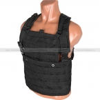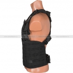Разгрузочный жилет с нашитыми стропами MOLLE для крепления подсумков, кобуры и другого совместимого снаряжения. Нагрудная платформа жилета разворачивается, либо убирается во внутреннее отделение по желанию. Когда нагрудная платформа раскрыта, есть возможность установки бронепанели Гранит, SAPI, ESAPI (габариты отсека для установки бронеэлемента 24х37 см).