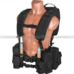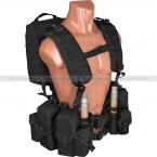 Спинная панель и задняя часть пояса обшиты стропами MOLLE, на которые можно закрепить дополнительное снаряжение. Функциональные стропы также нашиты и на плечах (для крепления рации, ножа и др.).