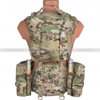 Широкие плечевые лямки со смягчающими вставками хорошо распределяют вес разгрузки на плечи. Все элементы тщательно прошиты. Материалом изготовления служит особопрочный нейлон Cordura®. За счет ремешков размер ременно-плечевой системы можно настроить точно по фигуре. РПС комфортно настраивается на торс (туловище) со следующими параметрами: высота от 50 см, обхват талии от 78 до 120 см.
