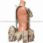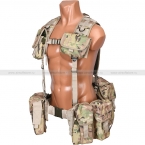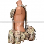 Модульная разгрузочная система для автоматчика (серия АК). Разгрузочная система состоит из пояса и плечевых лямок, переходящих на спине в сплошную платформу, на которых за счет нашитых ячеек PALS / MOLLE закрепляются подсумки, идущие в комплекте. Благодаря универсальности стандарта МОЛЛЕ разгрузку Рубеж можно доукомплектовать другими подсумками по желанию.