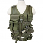 Тактический боевой жилет с комбинацией нашитых подсумков и MOLLE-строп для крепления необходимого снаряжения. Основа жилета – прочная сетка, обеспечивающая прекрасную вентиляцию. Жилет настраивается по высоте и охвату, что позволяет настроить его размер практически под любую фигуру. Застегивается на молнию с двумя дополнительными фиксаторами-застежками. Большое количество подсумков позволяет размещать множество магазинов и иного снаряжения. На нижней части жилета находятся петли для размещения ремня (в комплекте идет тактический ремень). Прочный, качественный, многофункциональный жилет, прекрасно подходит для страйкбола.