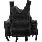Легкий тактический жилет с комплектом подсумков, пришитых к корпусу. Основа жилета – сетка, обеспечивающая сравнительно небольшой вес (~1.5 кг) и хорошую вентиляцию. Спереди застегивается на молнию. Сзади по бокам расположена шнуровка для регулировки жилета по фигуре. На плечах расположены липучки, позволяющие настраивать жилет по высоте. На нижней части жилета по всей окружности расположены петли для крепления жилета к поясному ремню. Жилет универсальный, может быть использован не только для страйкбола.