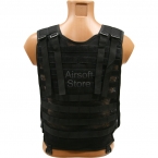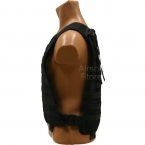 Данная модель тактического жилета представляет собой сетчатую основу, на которой закреплены MOLLE стропы. Крепления располагаются на передней и задней части жилета (7 на передней части, 8 на задней). На груди, с левой стороны, имеется поверхность для крепления шевронов и патчей. На спине верхние 4 линии строп выполнены также из липучек velcro, для более эргономичного расположения необходимого снаряжения. На внутренней стороне жилета спереди и сзади имеются карманы на молнии (спереди примерно 33 см в длину и 6 см в высоту, сзади – 33 х 9 см).
