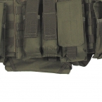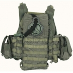 Разгрузочный жилет RANGER с системой MOLLE. В комплекте к нему идут: два двойных подсумка для магазинов М4 (для 4 магазинов М4/М16 или 2 магазинов АК/G36/AUG), один одиночный подсумок (для 2 магазинов М4/М16 или 1 магазина АК/G36/AUG), один двойной подсумок МР (для 2 магазинов МР7/МР5. Может использоваться для пистолетных магазинов), один одиночный подсумок для пистолетных магазинов любой модели, подсумок с липучкой, без застежки для мелких предметов (например, карта местности). Подсумки могут быть сняты или перевешаны. Жилет одевается через голову и подходит практически для любой фигуры, благодаря застежкам по бокам жилета. Для длительных, продолжительных боев или жарких дней, на спине предусмотрено водоснабжение – фляга для воды с трубкой. Фляга так же может использоваться отдельно как рюкзак.