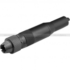 Металлическая (комбинация частей из стали 45 и алюминия Д16Т) реплика глушителя ПБС-4 для страйкбольного оружия. Глушитель имеет положительную (CW) резьбу М24х1,5. Внутри глушитель полый, раскручивается на 3 части, в передней его части есть направляющая для длинных стволиков. Покрытие – анодирование + воронение.