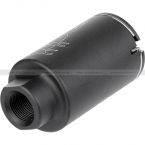 Модель пламегасителя (дожигателя) M4 Mini в стилистике NOV KFH, корпус имеет характерную "рюмочную" форму. Пламегаситель предназначен для установки на модели страйкбольного оружия с 14 отрицательной (CCW) резьбой.