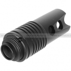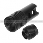 Стальной пламегаситель от компании CYMA. Сам пламегаситель имеет 24 положительную (CW) резьбу, но Комплектуется переходником на 14 отрицательную (CCW) резьбу, благодаря чему его можно установить на большинство моделей серии АК, а при желании и на любой другой страйкбольный привод с подходящей резьбой.