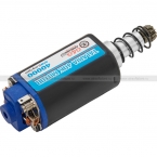 Высокоскоростной мотор с длинной осью для гирбоксов 2 версии. Работает на мощных неодимовых магнитах, способен развивать скорость вращения до 40000 оборотов в минуту. Хорошо подходит для установки в модели страйкбольного оружия с тюнингом на высокую скорострельность.