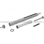 Корпус цилиндра изготовлен из титана, поршень – алюминиевый, с зацепом под 90°. Поршень и направляющая под стандартные спринговые пружины (13 мм), например, от AirsoftPRO. Набор способен работать с пружинами высоких номиналов (пружина в комплект не входит). Стальной стопор.