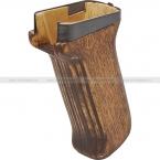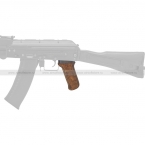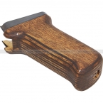 Пистолетная рукоять для страйкбольных автоматов серии АК. Имеет классическую (штатную) форму, идет под "толстые" (штатные/стандартные) моторы. Рукоять изготовлена из фанеры, тщательно обработана, покрыта маслом Minwax. Оковка – стальная, вороненая.