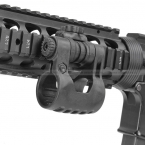 Кронштейн для тактический фонарей с диаметром тела от 24,5 мм до 25,5 мм. Кронштейн может быть закреплен на любой планке стандарта RIS. Есть возможность регулировки положения (угла наклона) фонаря относительно крепления. Корпус выполнен из пластика. Ширина – 49 мм. Вес ~63 грамма. Цвет – черный.