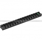 RIS планка для страйкбольных винтовок M24. За счет большой длины планки (17 см) и цельного профиля (например, на базовой планке CYMA есть выемка) на планку можно установить любой прицел, совместимый с 20 мм рельсой стандарта RIS (Пикатинни). Для более точного горизонтального позиционирования винтовки планка снабжена встроенным уровнем.