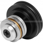 Вентилируемая голова поршня для ремонта и тюнинга страйкбольных AEG приводов с высокой скорострельностью или большой скоростью вылета шара, например, пулеметов. Имеет уплотнительное кольцо и металлический подшипник. Основа конструкции головы (ось) изготовлена из авиационного дюралюминия, внешняя часть (площадка) – из легкого и особопрочного композитного материала с высокими антифракционными свойствами (малый коэффициент трения). Конструкция обладает высокой ударной прочностью и износостойкостью. Под головы цилиндра с плоским демпфером.