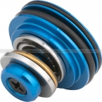 Плоская, алюминиевая голова поршня с подшипником. Двойное уплотнительное кольцо. Восемь отверстий для более плотного прижатия. Совместима с большинством гирбоксов.