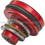 Алюминиевая голова поршня с каплевидным демпфером, тихого типа, т.н. "silent head". Снабжена уплотнительным кольцом и подшипником в основании. Вентиляционные отверстия служат для более плотного прижатия. Совместима с большинством гирбоксов. Для корректной работы необходима голова цилиндра с углублением в основании.