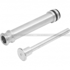 Алюминиевый поршень с направляющей для страйкбольных винтовок VSR-10 от Double Bell и аналогов. Голова поршня оснащена плоским резиновым демпфером и уплотнительным кольцом. Внутренний диаметр поршня ~11 мм. Внешний диаметр (в широкой части тела) ~20 мм. Длина тела поршня ~105 мм.