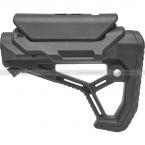 Приклад имеет регулируемый подщёчник: можно регулировать его положение, угол наклона. При необходимости подщёчник можно полностью снять. В корпусе приклада есть гнездо для быстросъемной (QD) антабки. Длина приклада ~18 см. Вес ~410 г. Цвет – черный.
