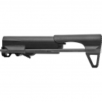 Выдвижной приклад из ударопрочного пластика, модель GOS-V5 производства G&G. Подобный тип прикладов широко используется в моделях пистолетов-пулеметов, например, ARP 9 / ARP 556. Для установки аккумулятора в основании приклада есть отделение. Направляющие – стальные.