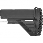 Телескопический приклад для страйкбольных приводов серии HK416, а также других моделей со стандартной 30 мм трубой. Корпус изготовлен из прочного пластика. Если снять тыльник, то в корпусе приклада по бокам есть отсеки для установки круглых или тонких ячеек (лепестков) аккумулятора.