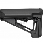 Телескопический приклад на модели автоматов серии M и АК, а также аналогов по принципу крепления. Диаметр посадочного места приклада – 3 см. Приклад изготовлен из ударопрочного пластика, выполнен как реплика с модели STR M-PUL. Тыльник – резиновый. На корпусе имеются отверстия для установки быстросъемной (QD) антабки. Цвет – черный.