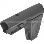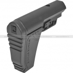 Пластиковый телескопический приклад для моделей страйкбольного оружия, оснащенных стандартной 30 мм трубой. Пластиковый тыльник можно открыть, за ним находится достаточно вместительный отсек для размещения аккумулятора. На корпусе приклада есть гнездо под быстросъемную (QD) антабку.