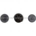 Набор стальных шестерней для текущего ремонта страйкбольных приводов серии L85. Шестерни с прямыми зубами, под полнозубую гребенку поршня. Изготовлены на ЧПУ-оборудовании со стандартным передаточным числом (18:1). Не рекомендуется использовать с пружинами номиналом выше М130.