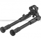 Телескопические сошки из авиационного алюминия. Сошки крепятся к стволу на быстросъемном креплении, совместимы со стволами диаметром от 12 до 19 мм. Высота ножек ~21,5-26 см. Упор сошек из твердой резины. Вес ~270 грамм. Цвет – черный.