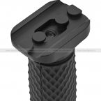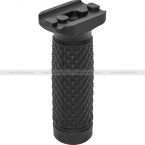 Передняя рукоять для более удобного удержания оружия и точного прицеливания. Рукоять закрепляется на цевья с интерфейсом KeyMod. На рукояти идет резиновая накладка с текстурой, напоминающей по форме поверхность шарика для гольфа. Высота рукояти (без крепления) ~90 мм. Материал изготовления рукояти – алюминиевый сплав.