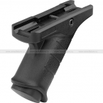 Тактическая рукоять с креплением на 20 мм планку (RIS). Позволяет удерживать оружие в более анатомически комфортном положении кисти руки под углом ~45°. Корпус рукояти изготовлен из прочного пластика, крепится к планке при помощи винта.