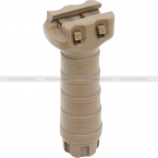 Прочная пластиковая рукоять для моделей страйкбольного оружия. Устанавливается на 20 мм рельсу (RIS). Рукоять довольная объемная, хорошо лежит во врослой руке. Есть небольшие "рёбра" на корпусе для более надежного удержания. Цвет – Dark Earth (тёмно-земляной). Реальный цвет близок к Desert Tan.