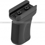 Тактическая рукоять на KeyMod цевья приводов серии АК от компании G&G, модели RK74 (модели T/E/CQB). Для четкого удержания рукой поверхность рукояти имеет текстуру и рифление. После установки на цевье снизу необходимо затянуть винт. Материал – пластик. Вес – 60 грамм. Цвет – черный.