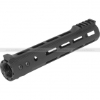 Прочное и стильное алюминиевое цевье для страйкбольного оружия М4-серии и другие модели, построенные на базе этой платформы. Тип цевья – free-float. Основной интерфейс – M-LOK, но сверху есть две секции к 20 мм рельсой (RIS). Слева и справа на корпусе цевья есть гнезда под QD-антабку.