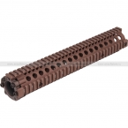 Реплика цевья DD MK18 RISII для страйкбольных приводов М-серии и аналогичных моделей. По всем четырём граням цевья идут 20 мм рельсы (RIS), что позволяет установить на него большое количество совместимого навесного оборудования (подствольный гранатомет, тактическая рукоять, фонарь и т.д.). Тип цевья – free float.