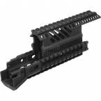 Тактическое цевье с накладкой на газоотводную трубку для автоматов серии АК и их модификации. Выполнено из анодированного алюминия. Тактические рельсы стандарта RIS (20 мм) расположены на всех четырёх гранях, что позволяется крепить тактическую рукоять, фонарик, прицел и любое иное RIS-совместимое снаряжение.